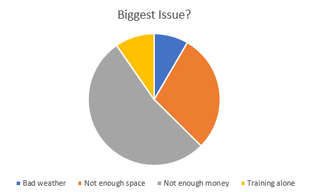Not enough money was the “biggest issue” for this question. It made up more than half of the votes here. Little space was also a concern.
