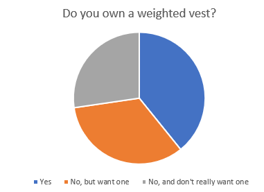 Only 39% of respondents own a weighted vest. 33% want one and 27% don’t really care for one.