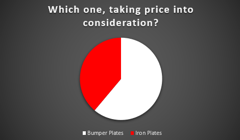 Bumper plates for most, even though they are more expensive. 61% chose that over Iron plates