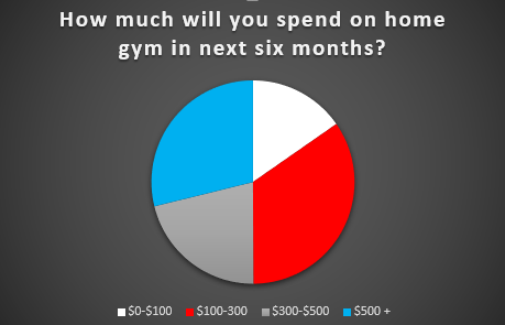 Most plan on adding to their home gym in the next 6 months. The highest portion of respondents said they’d spend $100 – $300, but 29% did say they’d spend over $500.