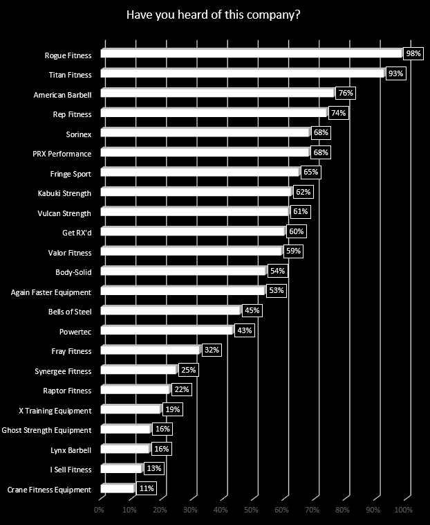Last week’s survey simply asked: “Have you heard of “X” company? All of these companies offer more than just a single product, you could outfit a good portion of your gym with them, and they distribute equipment in America.