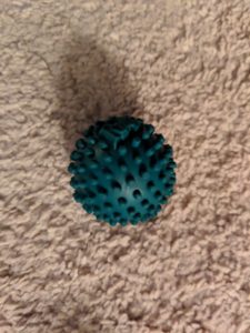 Rubz: A bit different and smaller than a lacrosse ball. This ball is designed to to massage the troubling parts on your hands and feets. It can also be used to other muscle groups (like a lacrosse ball) and be taken just about anywhere, since it fits in the palm of your hand.