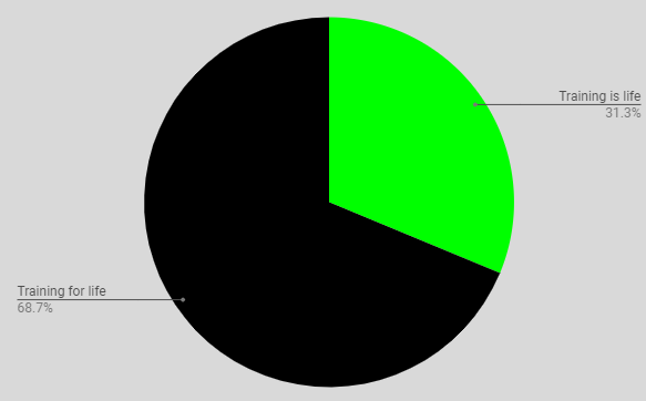 Which one? Training is Life or Training for Life? Over two-thirds voted for the latter. You’ll see why in the next survey question.