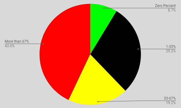 What percent of your home gym was bought new? While most respondants said that more than 67% of their home gym was bought new (43%), more than half (57%) said at least a third of their gym was used. There seems to be a decent mix of new and used equipment in most home gyms.