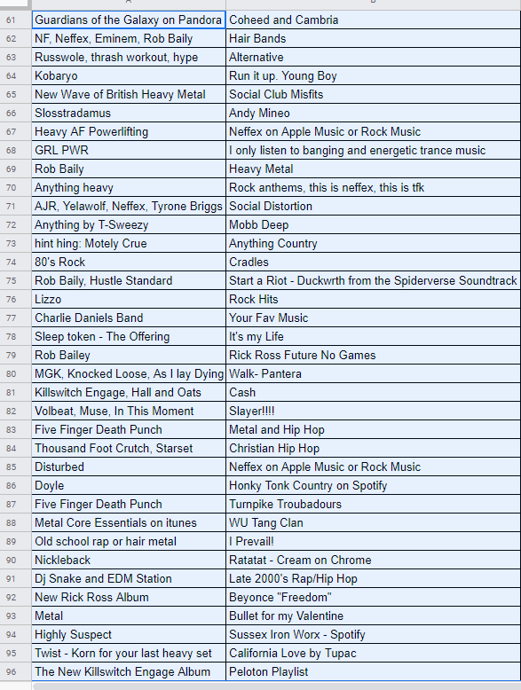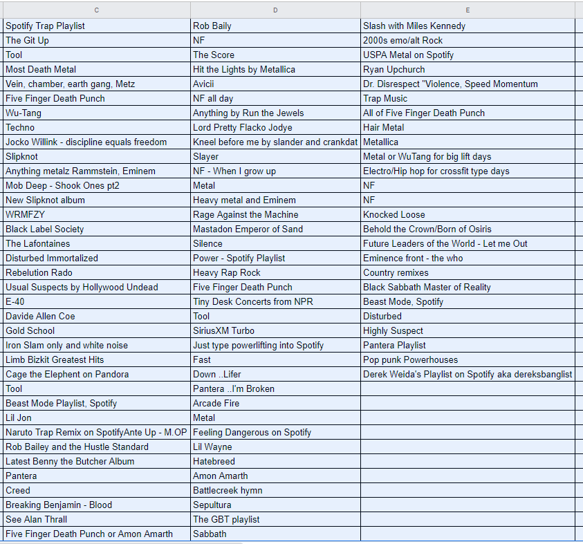 Playlist Recommendations? All responses below (including sarcastic responses)! This one was a tough one to summarize, but scan the answers if you are looking for something new or just curious to hear what others are listening to.