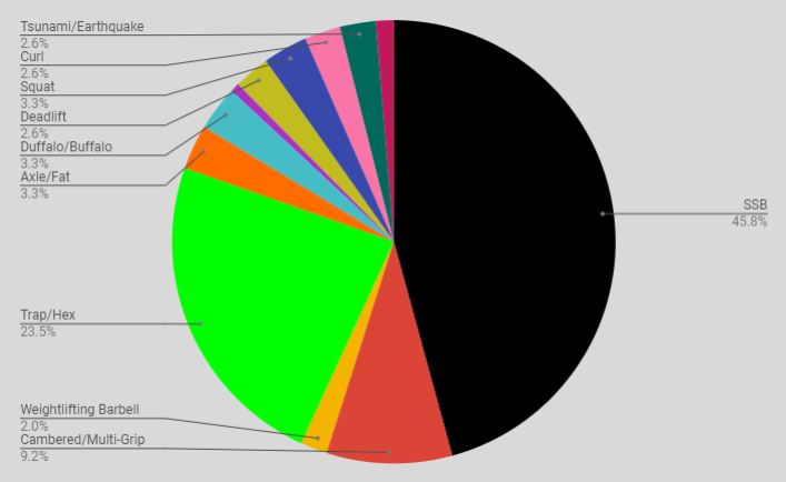 Favorite Specialty Bar? Safety Squat Bars dominated this one. Trap bars were also extremely popular and these combined for 69% of total votes.