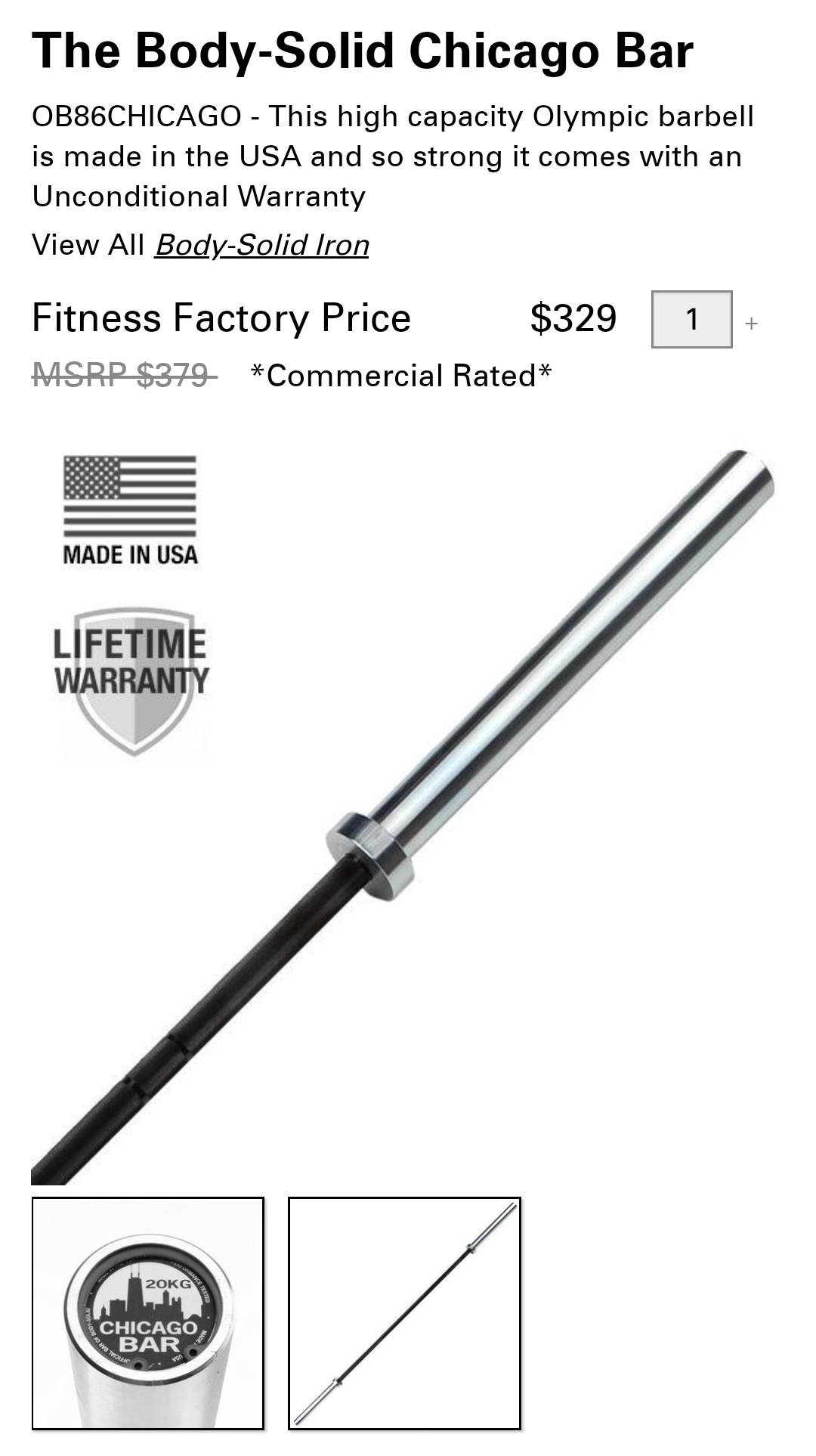 8%- Chicago Bar: Oly Bar from Body-Solid