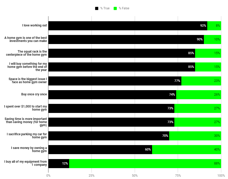 - 74% believe that “Buy Once, Cry Once” is a true statement and 73% spent over $1,000 to start their home gym.