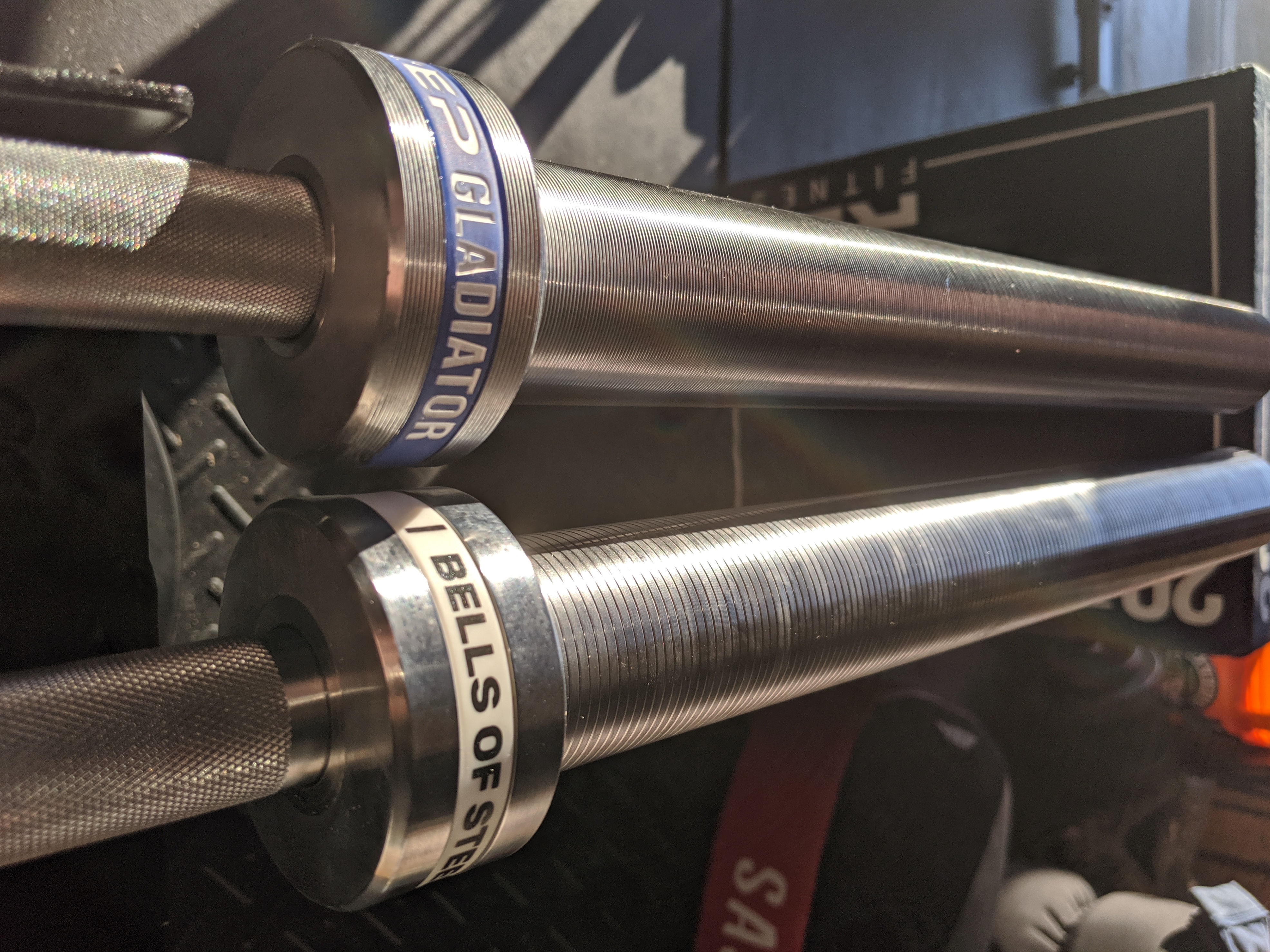 • The knurling for the Bells of Steel bar is more aggressive, while the Gladiator has more of a medium knurl (better for CrossFit workouts).