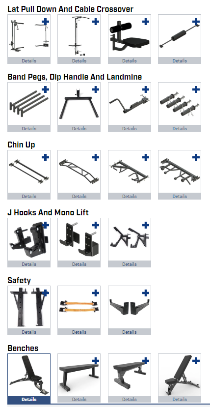 The number of different attachments is what sets this rack apart from many of the other power racks built for home gym owners, especially at this price point. All of these are optional, so you can personalize it as you wish (or what your wallet can handle). Here is a breakdown of the options: