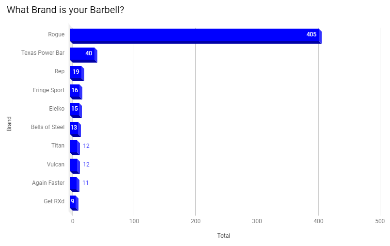 Part of last weeks Sunday asked, “What is your primary barbell?” There were nearly 700 responses to this fill in the blank question.