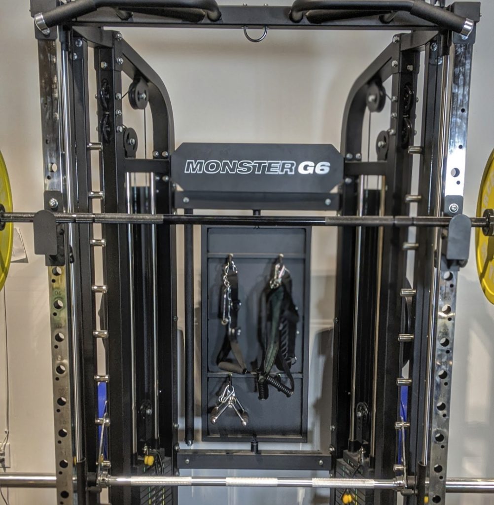 - The Monster G12 is a little wider and not quite as deep as the G6, which ultimately does make it a bit more versatile. It also creates a better experience using the functional trainer. The G12 dimensions are 79″ Wide x 49″