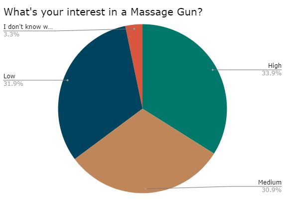 About 2/3rds have at least a medium interest in a massage gun. 55% say they have used one.