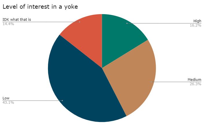Let’s call the level of interest in a yoke mild. `16% had high interest but 43% voted low.