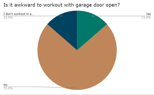 Only about 16% of those that workout in a garage, say that it’s awkward to do so with the door open.