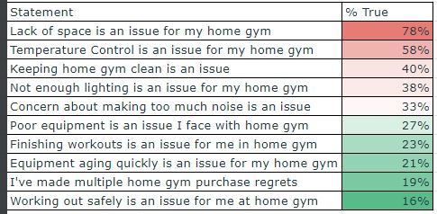 In the latest Sunday Survey, it was revealed that the “Lack of Space” is the biggest issue for home gym owners. Other highlights of the most recent survey include: