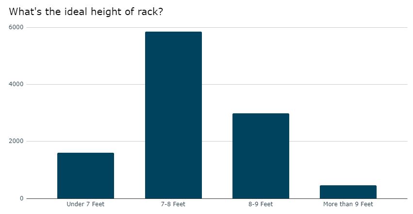 What’s the ideal height of the rack? About 54% believe 7-8 feet is the height they are looking for. Less than 15% want under 7 feet and 4% over 9.