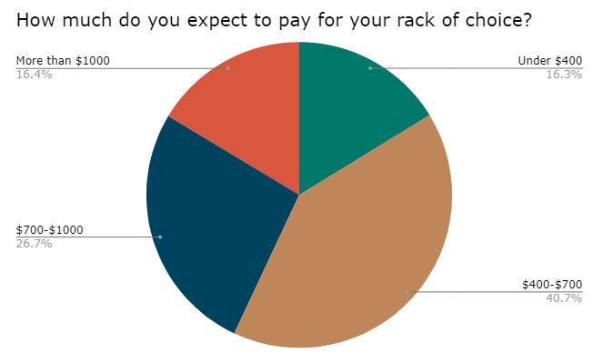 How much do you expect to pay for your rack of choice? The sweet spot seems to be between $400 and $700, where about 41% voted. Only 16% voted above $1,000 and below $400.