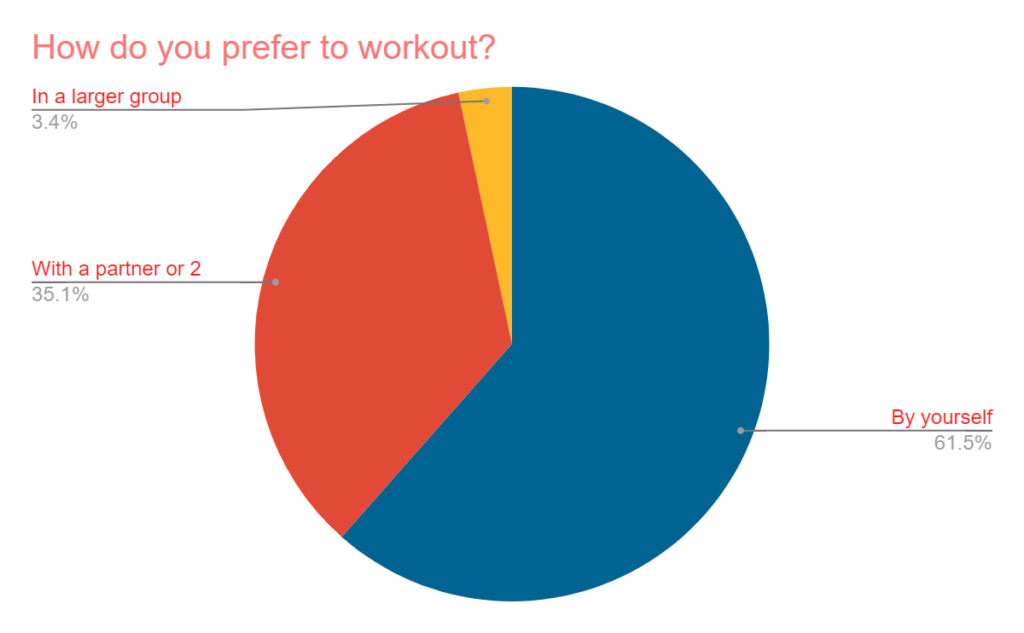 The majority of respondents enjoy working out by themselves. Only 3% said they preferred to work out in a larger group.