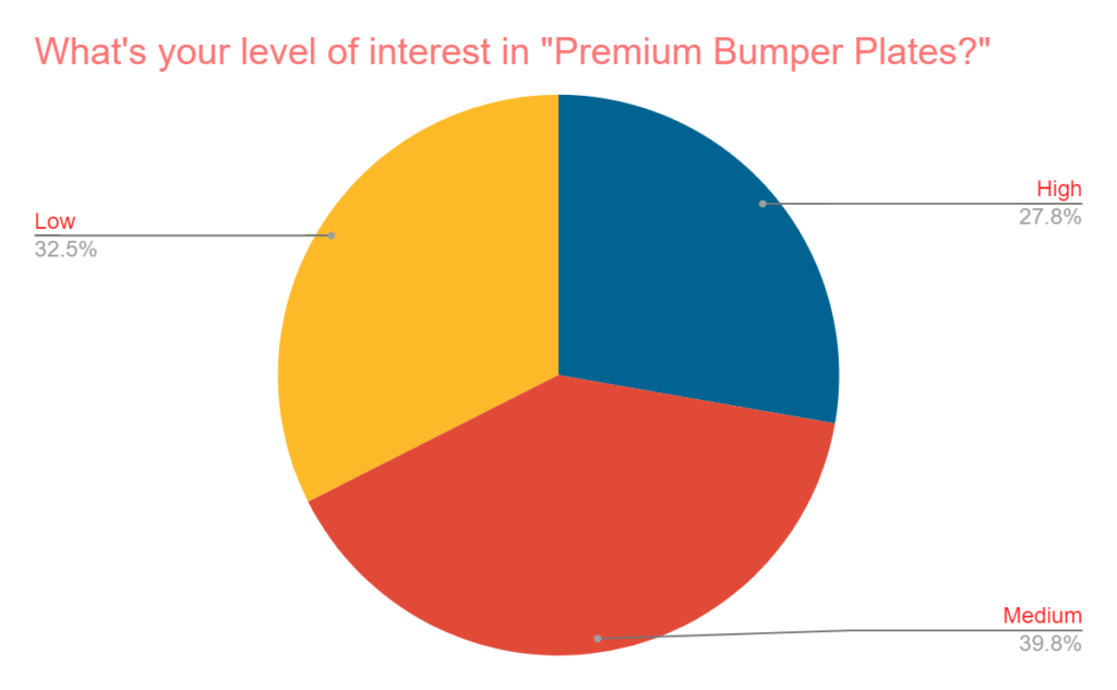 The level of interest in “Premium Bumper Plates” is relatively spread out. For reference, results are somewhat similar to interest in “premium j-cups,” which was asked last week.