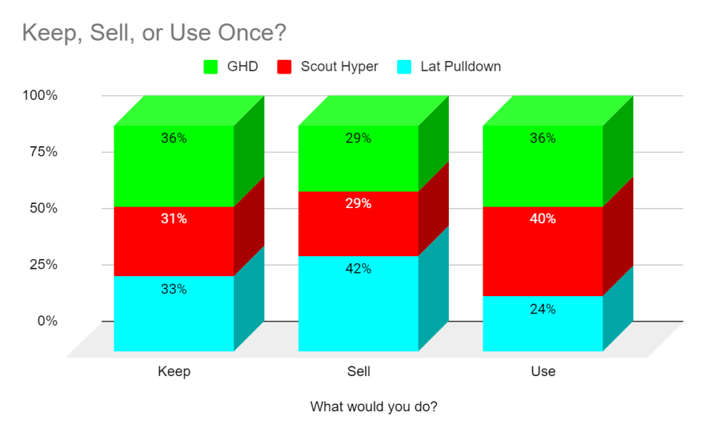 • The Lat Pulldown was the most loved/hated option, with only 24% not choosing to keep or sell.