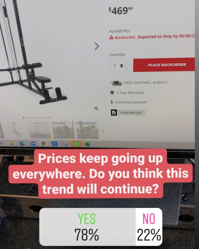 • The primary reason appears to be that the price of steel is going up rapidly. This, in combination with a high demand for gym equipment, is a deadly combination for the buyer.