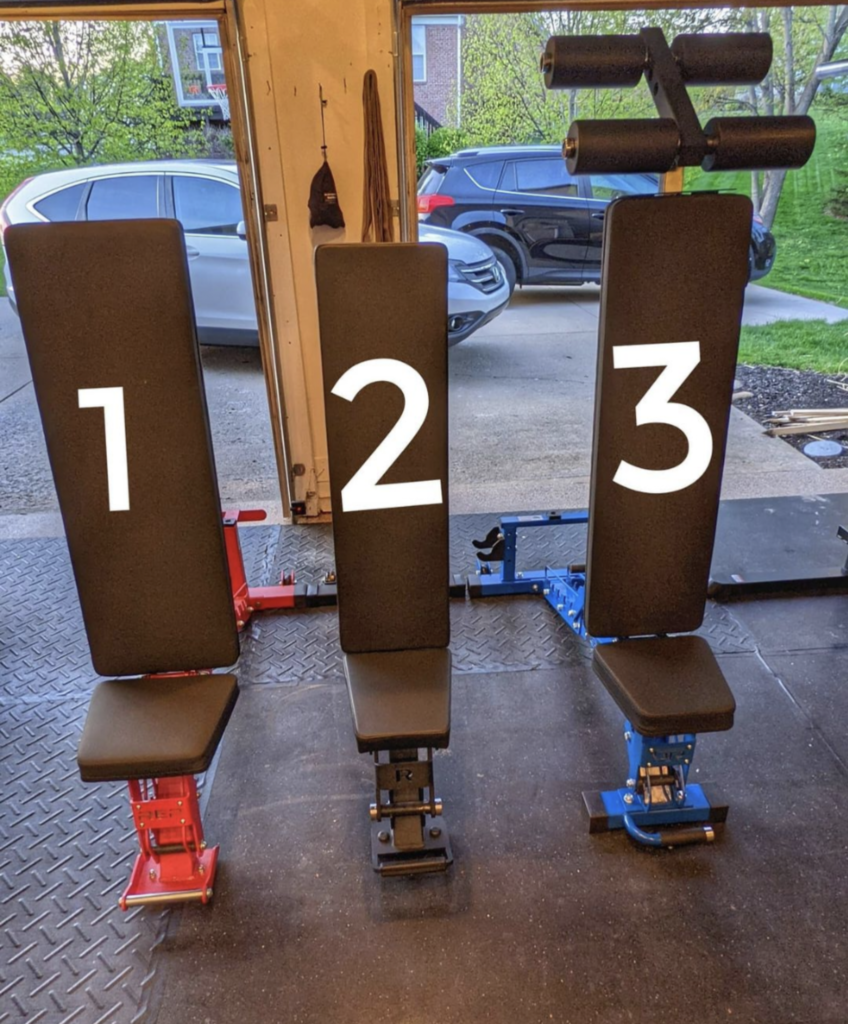 Rep AB-5200 (left), Rogue Adjustable Bench 2.0 (middle), Get RXd FIDAB-2 (right)