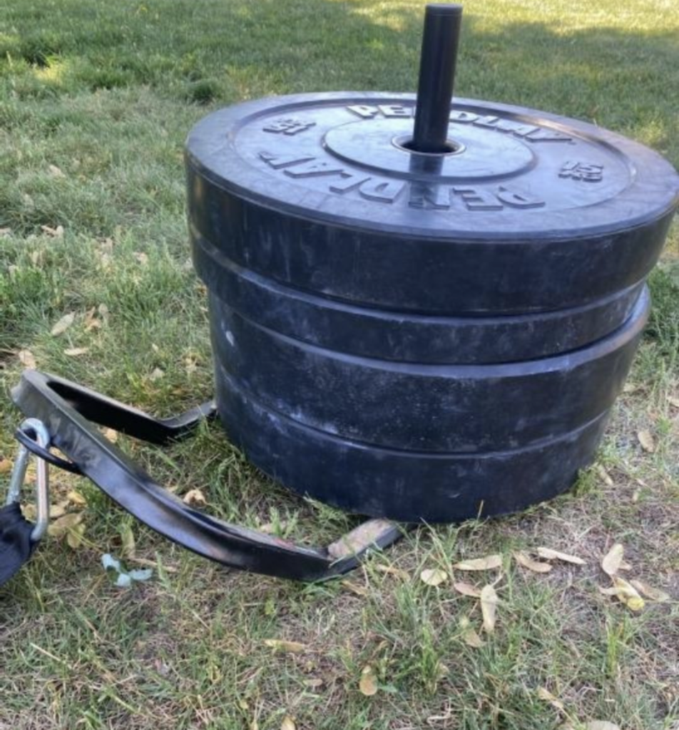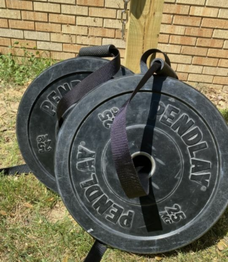 - Farmer’s Carry Handles: The Farmer’s Carry is a simple workout that requires little to no learning curve. We went with this extremely cheap option to add your plates to get a grinder of a workout, taxing your forearms and cardio. We searched Amazon and found these handles for around $40 (currently $23) for this item.