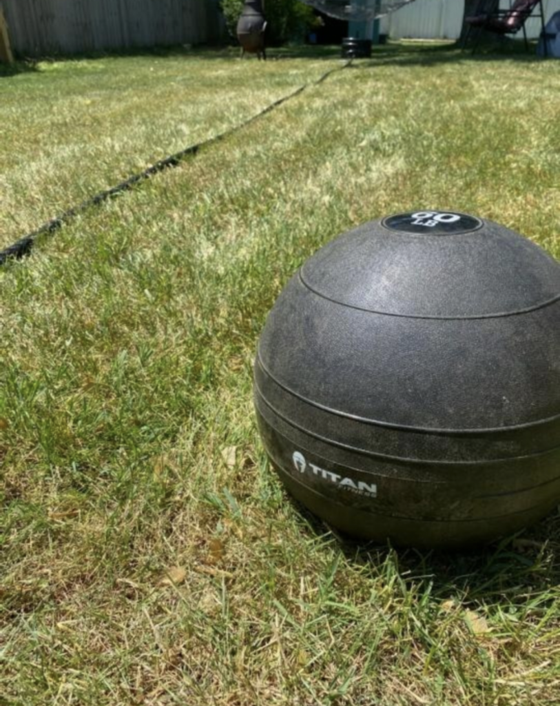- Heavy-ish Slam-Balls: Slam balls are often overlooked. They are great items to work explosive movements into your routines. You can do slams, tosses, over-shoulder, holds, and even squats with them. We went with a 60 lb option from Titan Fitness. The cost was $90, and like always, you get free shipping.