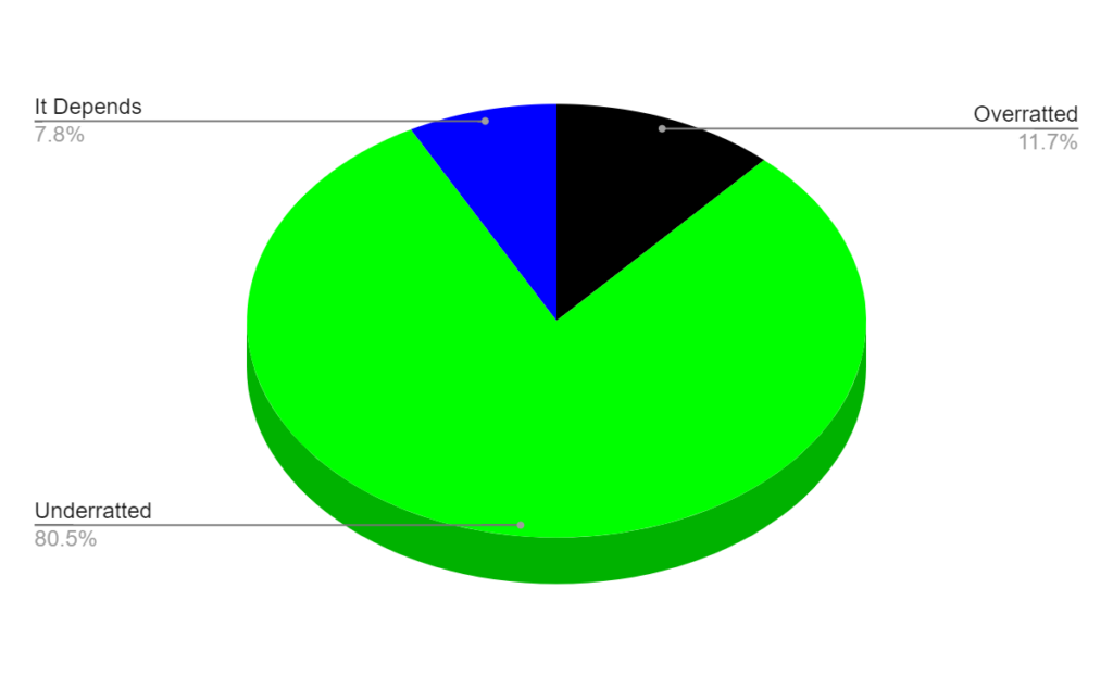 This survey simply asked whether something was overrated or underrated? Here are some notes.