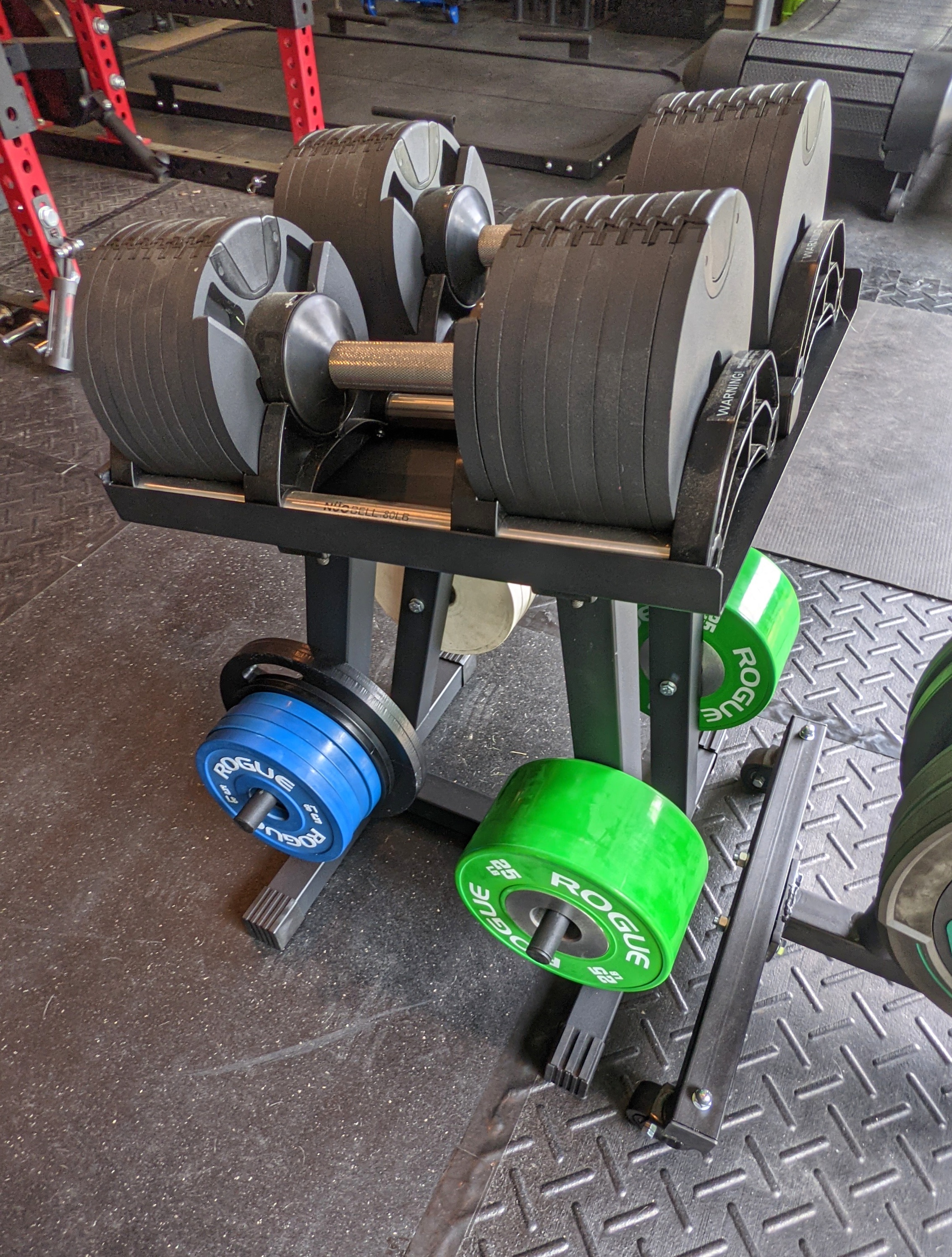 V3 Dumbbell Stand and Plate Tree from Titan: Those adjustable dumbbells on the ground are annoying, but so is paying for storage after purchasing an expensive set. Spending hours on a DIY project doesn’t sound like a good use of time either. In addition, it’s likely that if your adjustable dumbbells are on the ground, they probably are not as used as much as they should be. It’s easy to ignore, and you may not be getting the full value out of them. This option from Titan is a practical solution. There aren’t any other adjustable dumbbell storage options that are this versatile, especially for the price. While not overbuilt, this is a solid option that has the ability to hold a good amount of weight. It will make your adjustable dumbbell experience much smoother if they are currently sitting on the ground.