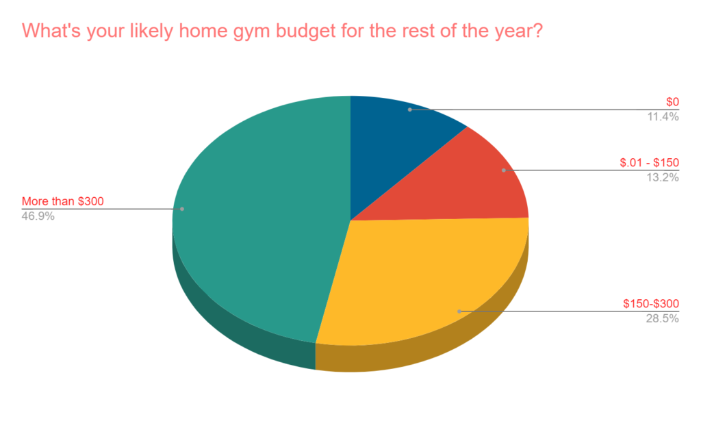 46% say they are likely to spend at least $300 on their home gym in the last half of the year. Only 11% said $0.
