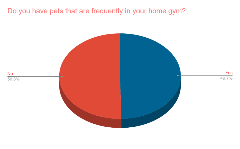 About half have pets frequently in their home gym.