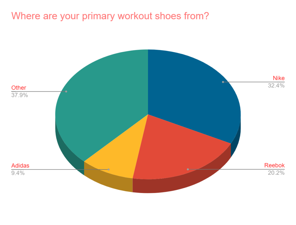 In a follow-up question, it was asked what those “other” shoes were. NoBull and Under Armour are the most popular response by far.