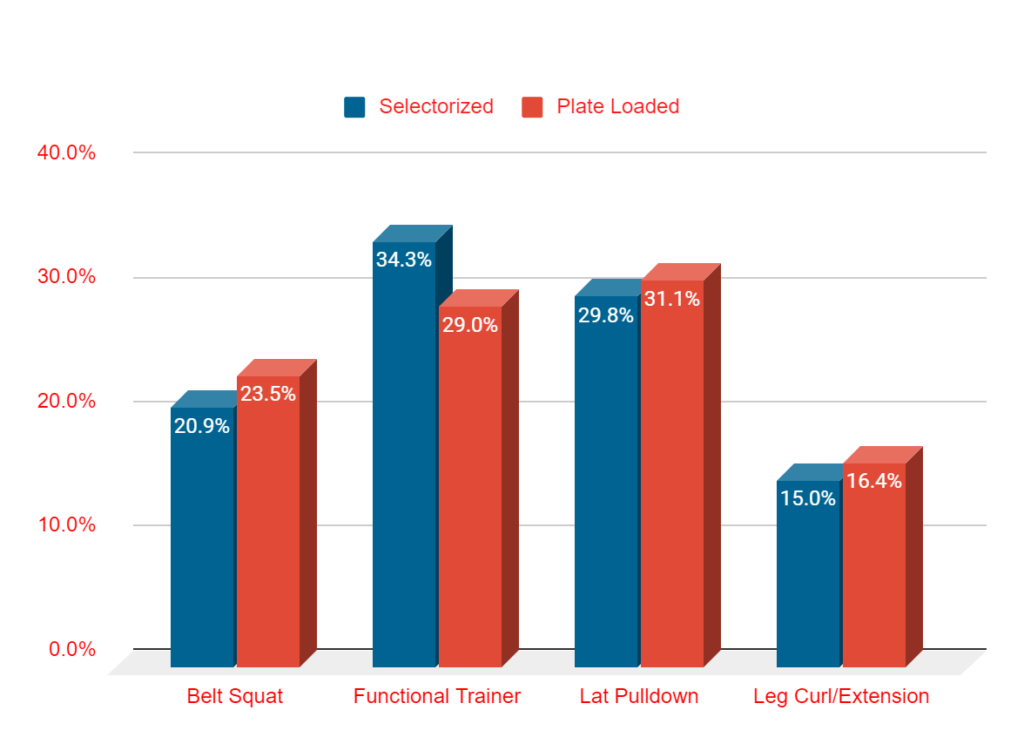 The functional trainer beats out the lat pulldown, belt squat, and leg curl/extension when it comes to stack weight. It was not absolutely dominant, though, with 34% of the votes. The simple lat pulldown received 30% of the votes, so it wasn’t too far behind.