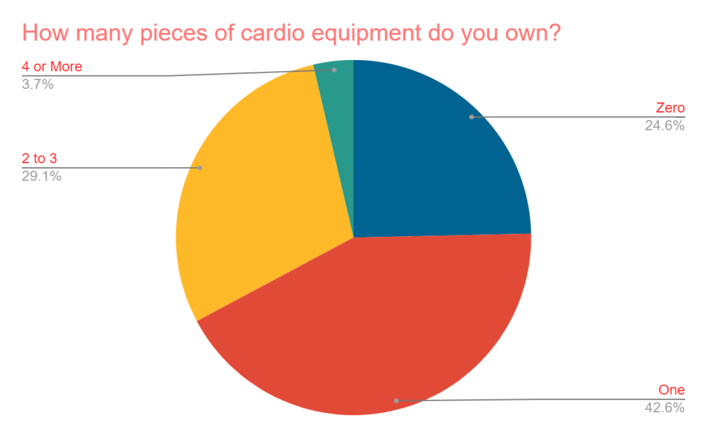 - Most do not have more than 1 piece of cardio equipment if any. The most popular response was simply 1, with nearly a quarter not owning any when asked the number of cardio pieces they own in their home gym.