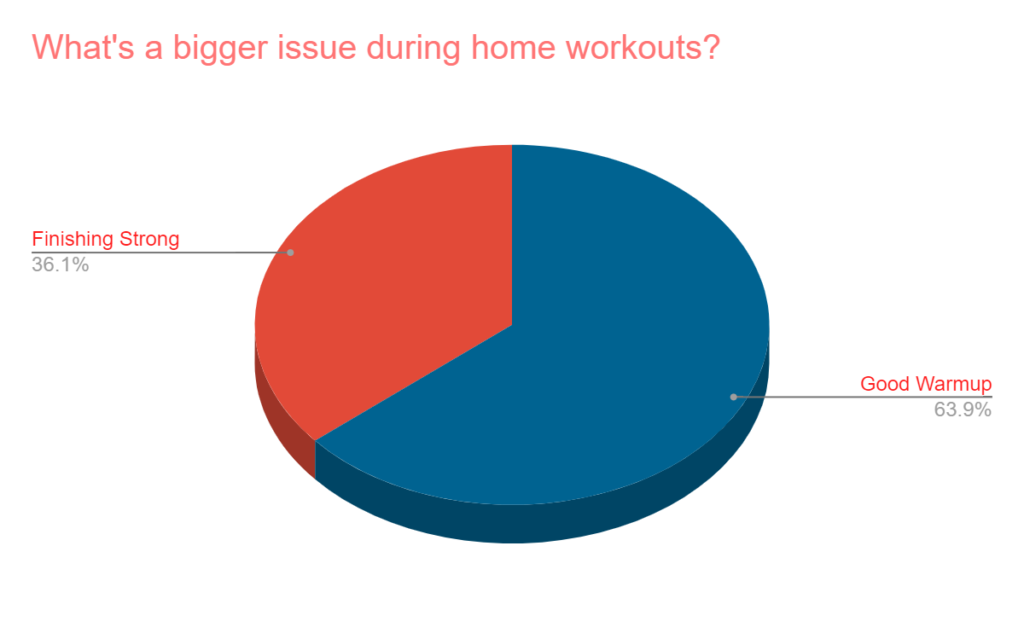 - In a head to head matchup, about 64% believe it’s more difficult to get a good workout vs. finish strong for home workouts.
