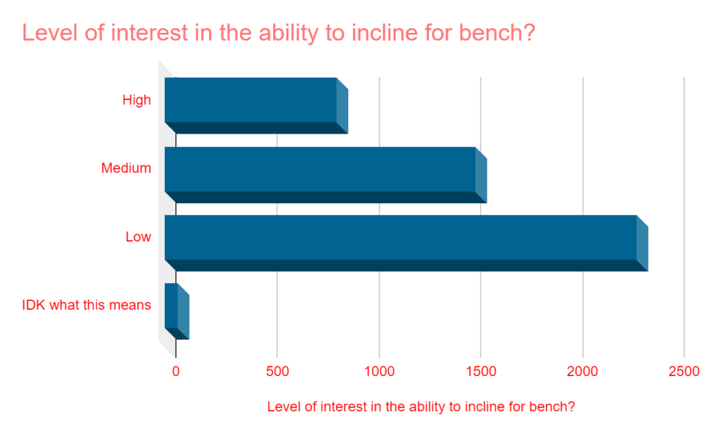 - Only 18% said the ability to decline on a bench was of high interest.