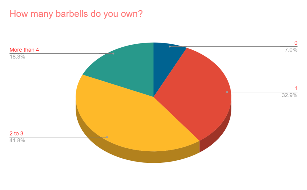 - Only 7% claim not to own a barbell, while almost 60% own multiple.