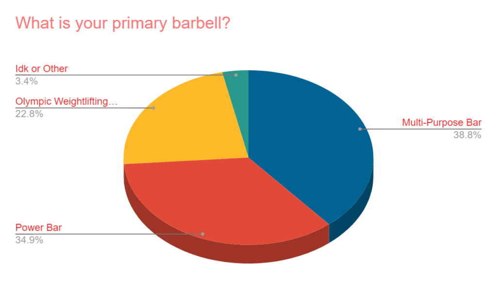 - The multi-purpose bar narrowly beat out the power bar as the most popular “primary barbell” that survey responders use.