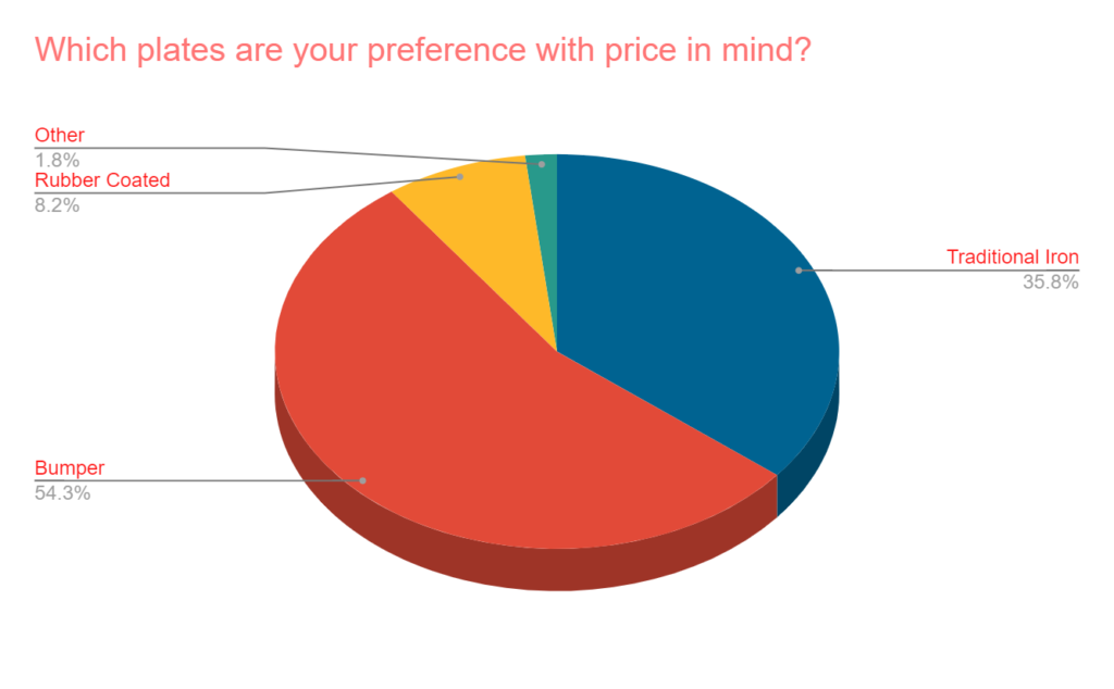 - Less than 5% own bumper plates (71%) compared to iron plates (66%)