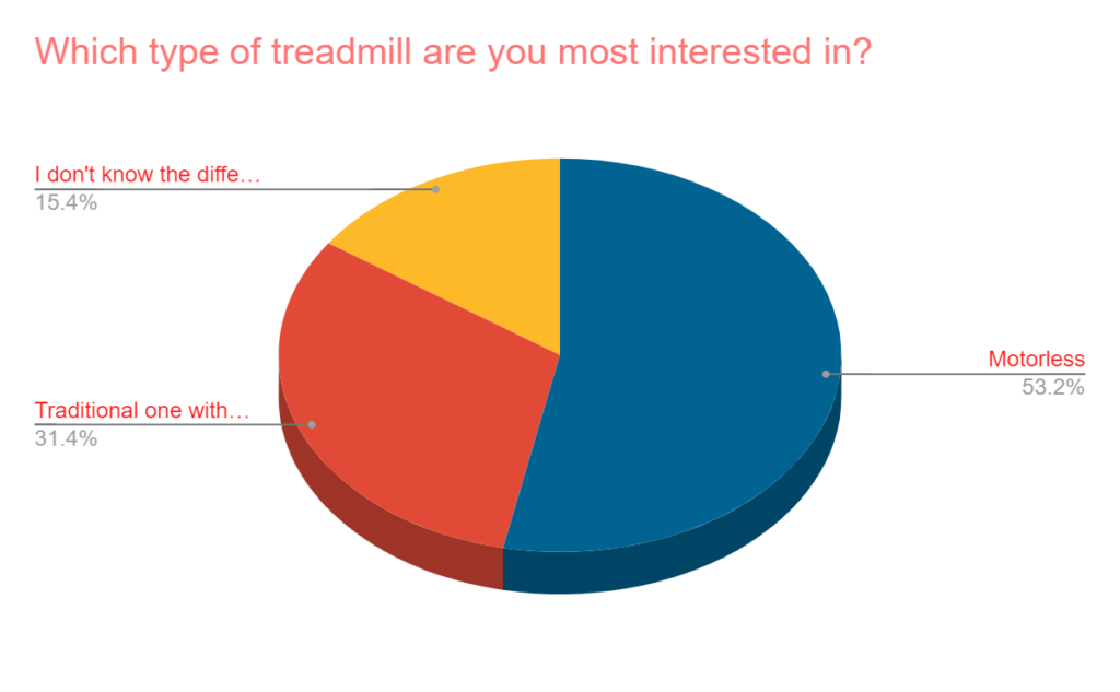 - Motorless treadmills are much more popular than those with a motor from these survey responders.