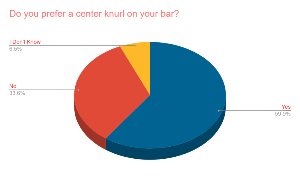 - Nearly 2x more prefer a bar to have a center knurl on it. Only a handful don’t know what they like better (as opposed to the bench width question above).