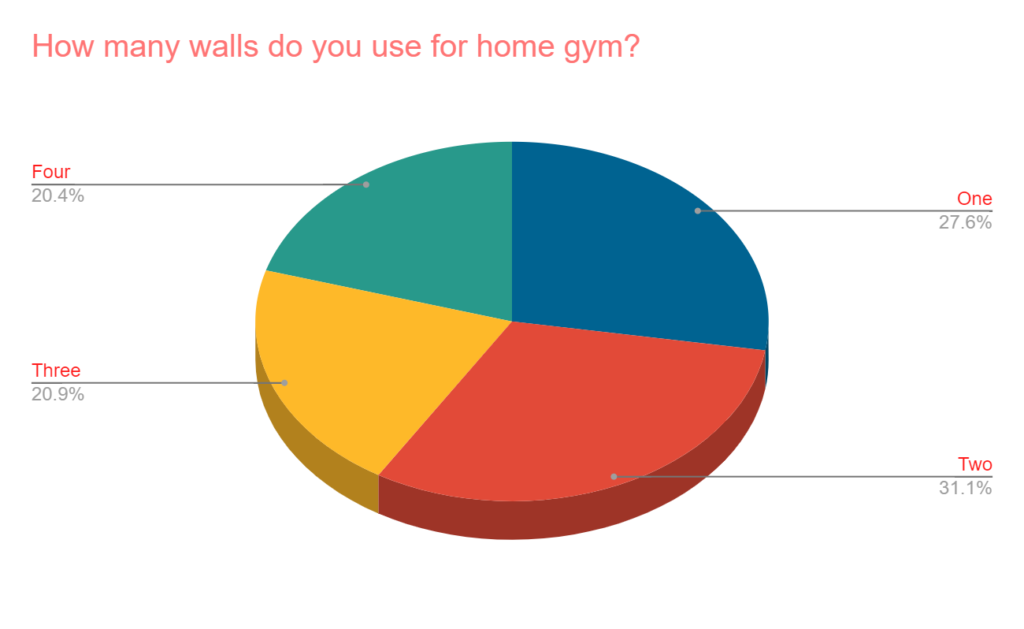 - About 60% are working with one or two walls. Most do not have a dedicated room for their home gym.