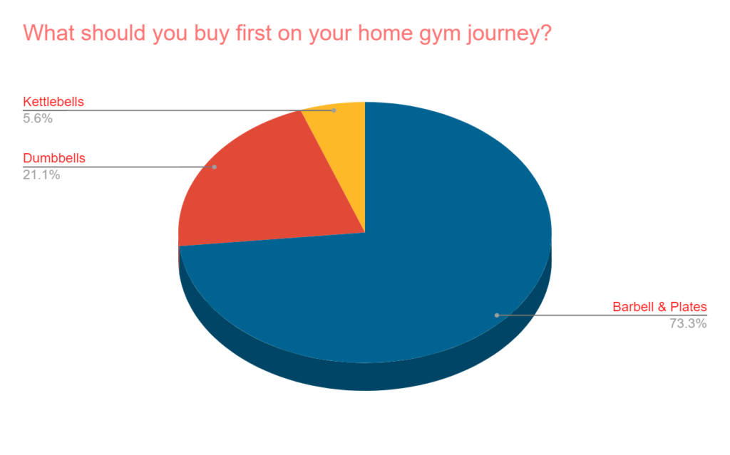 - Nearly 3/4 say that a barbell & plates should be the first purchase when starting a home gym.