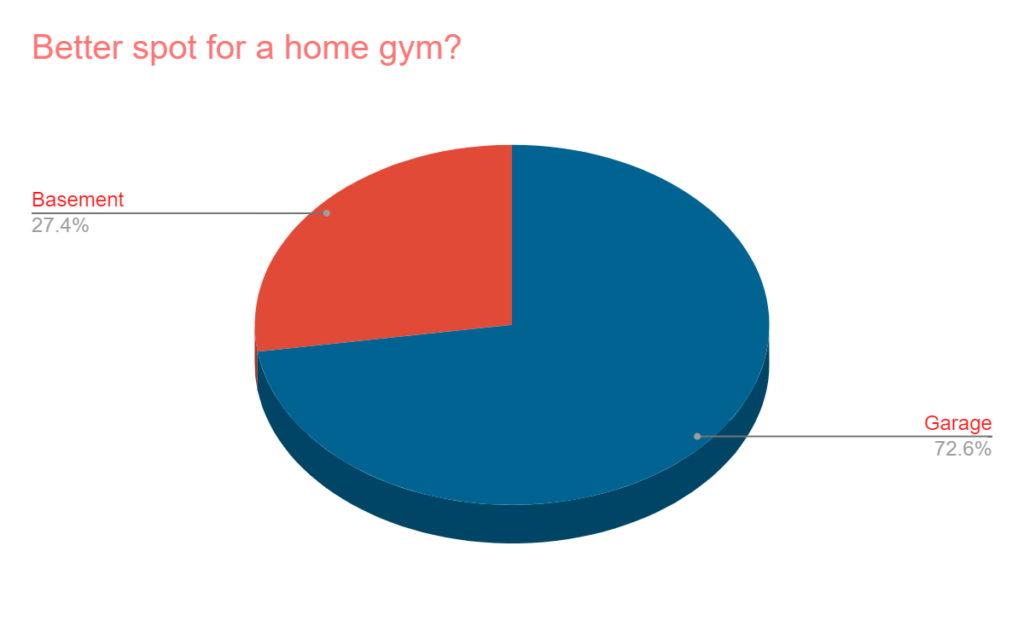- In a head to head matchup, nearly 3 out of 4 voted for the garage. In this IG conversation though, more basement gym fans came in to argue their side of the argument.