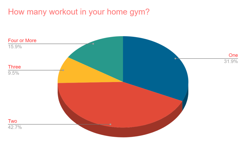 - Only 32% of home gyms have a single person using it and the most popular answer was “two” with nearly 43% of the responses.