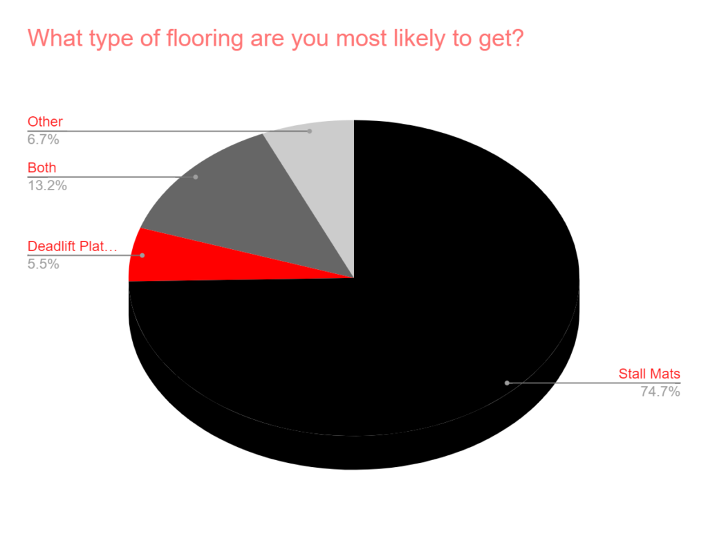 • Stall mats absolutely dominated this one. It received nearly 3/4 votes and about 14x more votes than a deadlift platform and 11x more than “other” options.