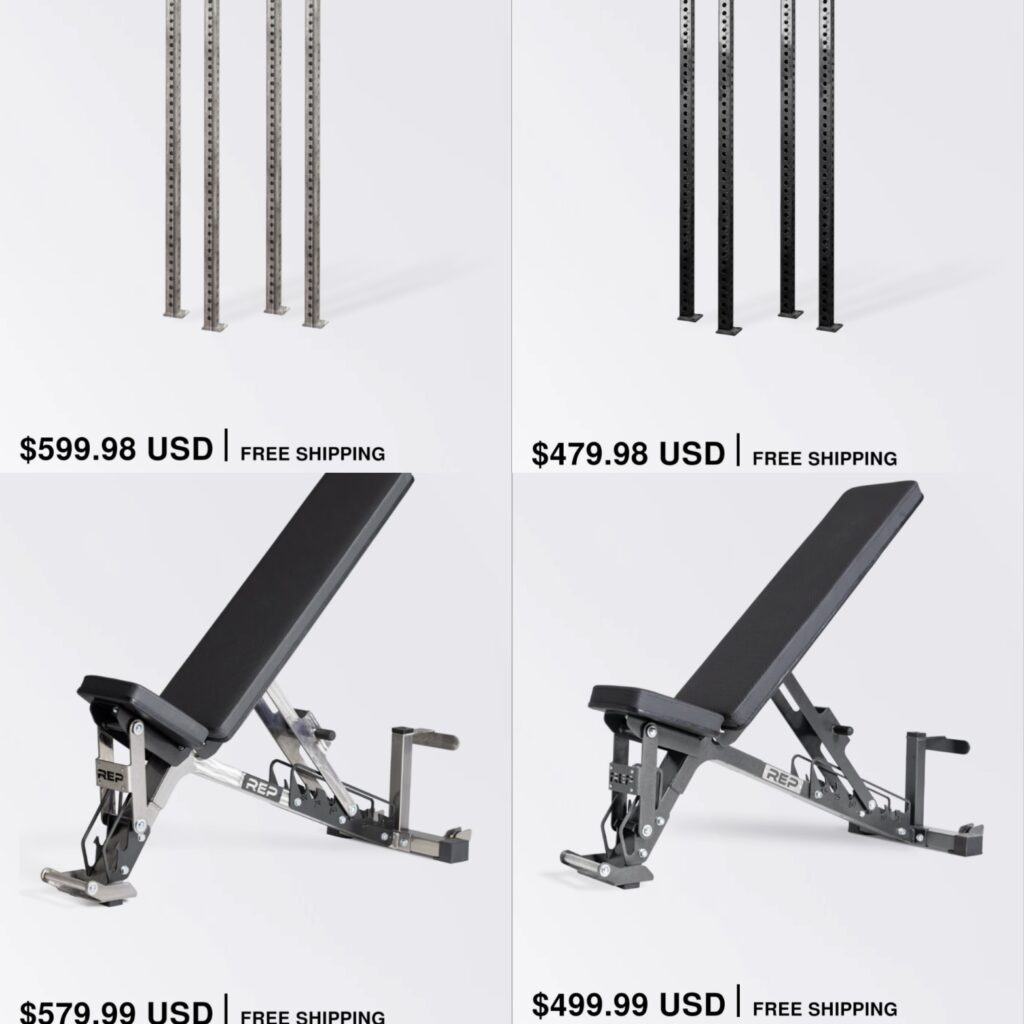 These are two great budget-friendly options, and with there only being a $20 difference (both offering free shipping), price should not be an issue. On one side, there is the T2 which is a sturdy 2×2″ style rack with a ton of excellent attachments that you can build out your rack with. On the other side is a great company like REP with little details (numbered uprights, sleeker look), and remember, many of those Titan attachments will work on 1100. These are two of the best-priced rack options, and you really can’t go wrong with either one.
