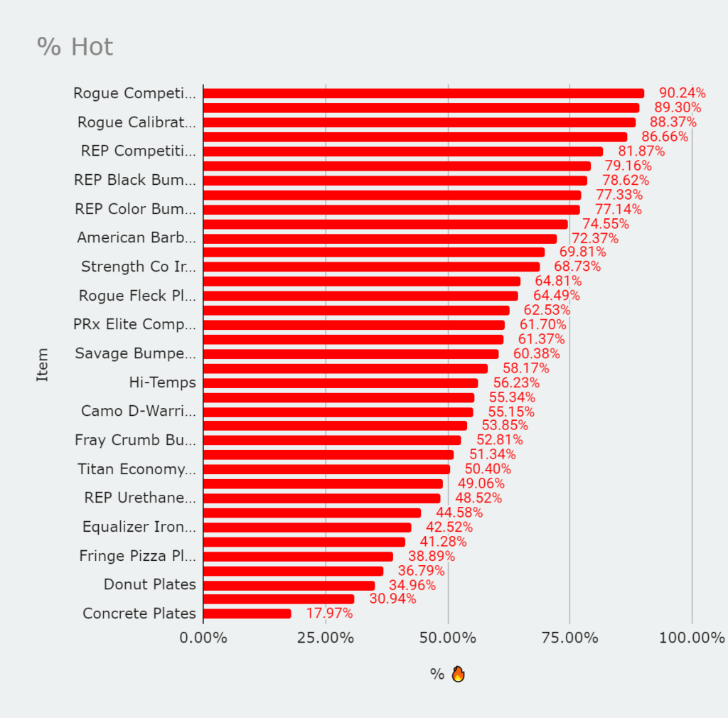 | 6 | Bumper Plates | 4,175 | 1,324 | 75.92% |